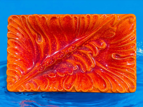 Plume Ashtray 7" circa 1965, Mandarin Orange glaze, photos from the collection of Allen Rothpearl