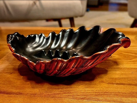 Not found in a catalog ≈9¼", Peasant Red glaze with matte black liner circa 1960s-1970s, photos from the collection of Allen Rothpearl
