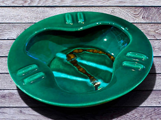 Round Ashtray 6" circa 1959-1961, Green Cascade glaze, photos from the collection of Allen Rothpearl