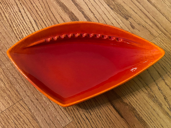 Nesting Ashtray 12" circa 1965-1969, Mandarin Orange glaze, photos from the collection of Michael Bono