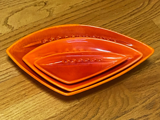 Nesting Ashtray 7½" circa 1965-1969, Mandarin Orange glaze, photos from the collection of Michael Bono