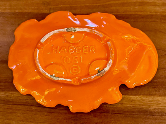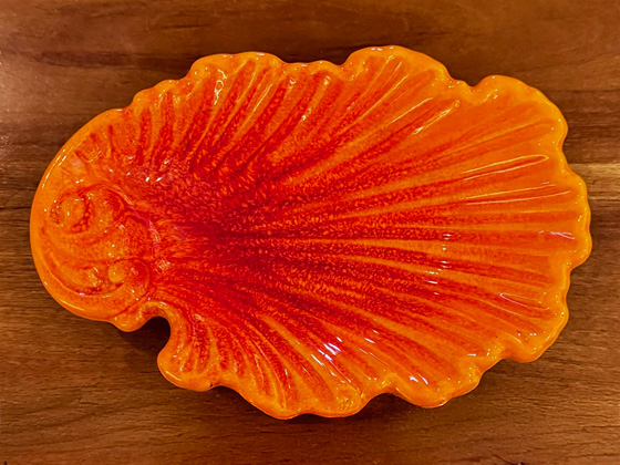 Oval Shell Ashtray 6½" circa 1966, Mandarin Orange glaze, photos from the collection of Allen Rothpearl