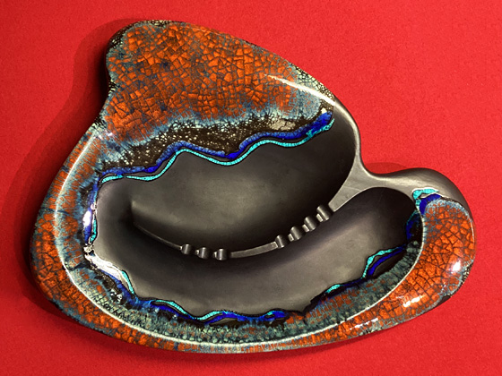 Ashtray 16" circa 1966, Peacock glaze, photos from the collection of Michael Bono