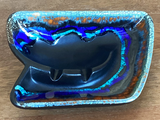 Ashtray 5¼" circa 1967, Peacock glaze, photos from the collection of Michael Bono