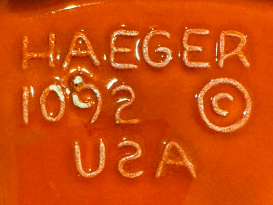 Bottom reads: HAEGER 1092 © USA (S is backwards)