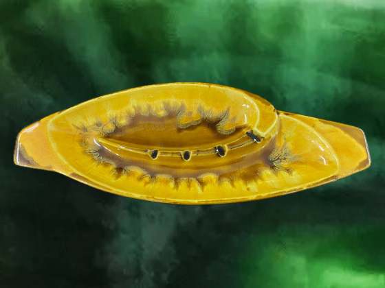 Ashtray 15" circa 1967-1974, Marigold Agate glaze, photos taken in an antique store by Michael Bono