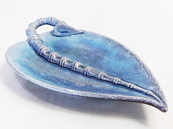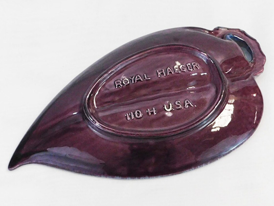 Leaf Ashtray 16" circa 1960-1965, Amethyst Crackle glaze, photos courtesy AcornAndAlice on Etsy