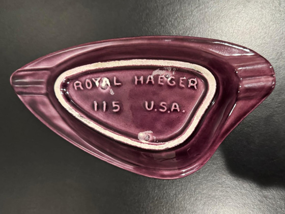 Free Form Ashtray 8" circa 1960-1961, Purple Jeweltone glaze, photo from the collection of Jay Jalovec