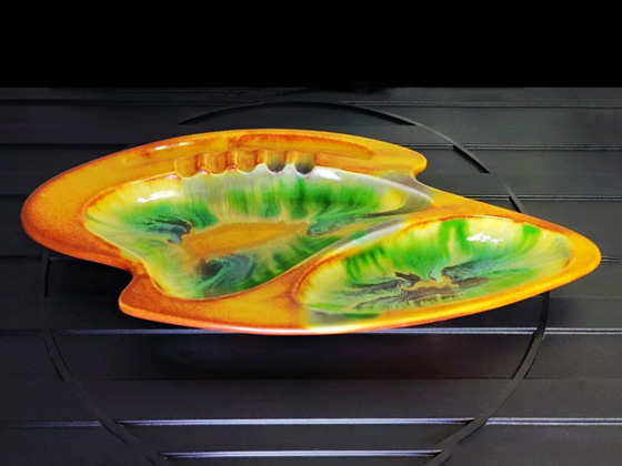 Sculptured Ashtray 14" circa 1960-1962, Briar Agate glaze, photos courtesy Ty's Fast Treasure on eBay