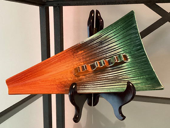 Triangular Modern Ashtray 13" circa 1961-1970, Reseda Green glaze, photos from the collection of Michael Bono