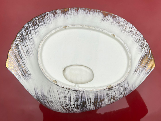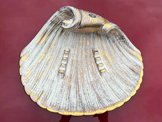 Large Shell Ashtray 15" circa 1961-1964, Gold Tweed glaze, photos from the collection of Troy LaFollette