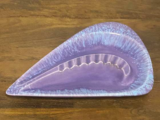 Free Form Ashtray 12½" circa 1962-1963, Lilac glaze, photos from the collection of Michael Bono