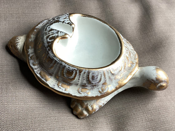 Turtle Ashtray 8" circa 1962, Gold Tweed glaze, photos from the collection of Michael Bono
