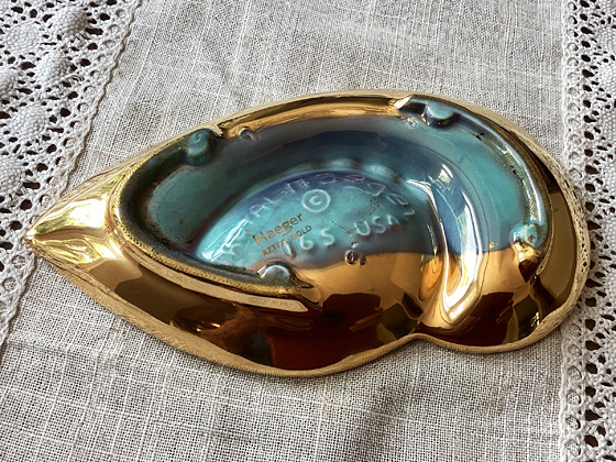 Free Form Ashtray 8½" circa 1962-1969, Aztec Gold glaze, photos from the collection of Michael Bono
