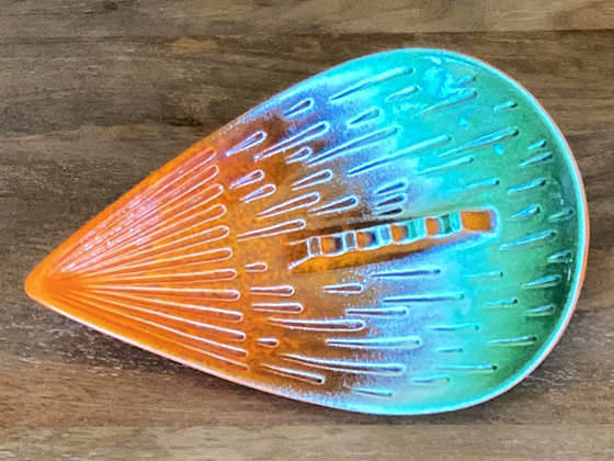 Free Form Textured Ashtray 10" circa 1963-1967, Reseda Green glaze, photos from the collection of Michael Bono