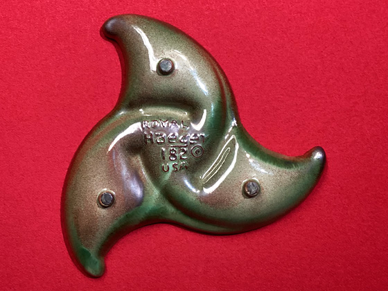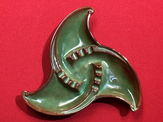 Three Pointed Ashtray 9½" circa 1963-1964, Avocado glaze, photos from the collection of Michael Bono