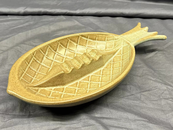 Pineapple Ashtray 10½" circa 1963-1964, Green Stoneware glaze, photos courtesy johnnysgarage on eBay