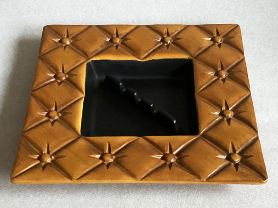 Ashtray 9" circa 1968-1970, Peasant Gold glaze with matte black liner, photos from the collection of Michael Bono