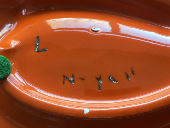Ashtray from DIY mold 8" circa unknown (see above), glazes provided by pottery shop, photos from the collection of Michael Bono