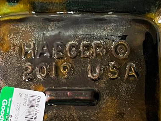 Square Ashtray 9" circa 1969-1970, Blue & Green Jewel Tone surrounded by Gold Spice glaze, photos from the collection of Kass Martin