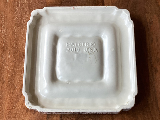 Square Ashtray 9" circa 1969-1970, Gold Tweed glaze, photos from the collection of Michael Bono