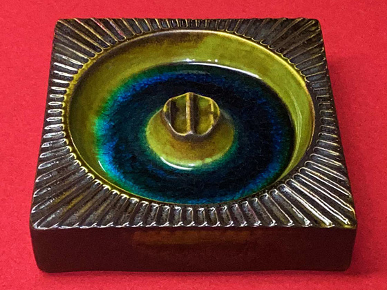 Ashtray 7" circa 1969-1970, Blue & Green Jewel Tone surrounded by Mandarin Green glaze, photos from the collection of Michael Bono