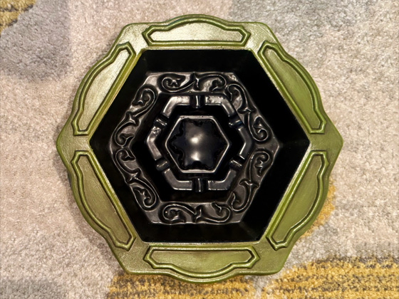 Ashtray 9" circa 1973-1975, Peasant Olive glaze with matte black liner, photos from the collection of Allen Rothpearl