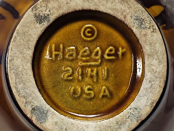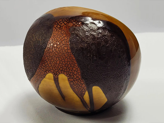 Ashtray 5" circa 1977, Marigold Agate Graphic Earth Wrap glaze, photos courtesy ModRetroLiving on Etsy