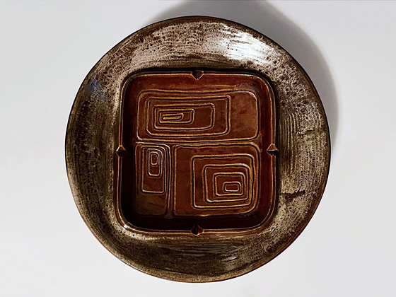 Ashtray 10½" circa 1977, Oatmeal Decorated glaze, photos courtesy Curly’s Cupboard on eBay