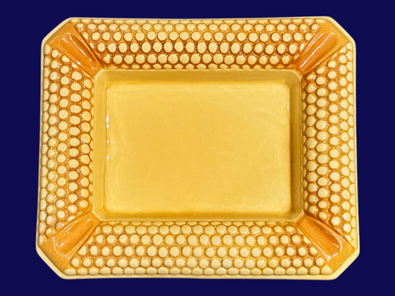 Rectangular Hobnail Ashtray 9½" circa 1979-1980, French Yellow glaze, photos from the collection of Allen Rothpearl