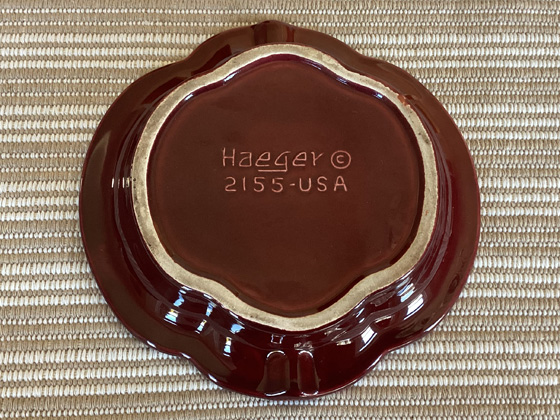 Ashtray ≈7½" circa 1982-1984, Burgandy glaze, photos from the collection of Michael Bono