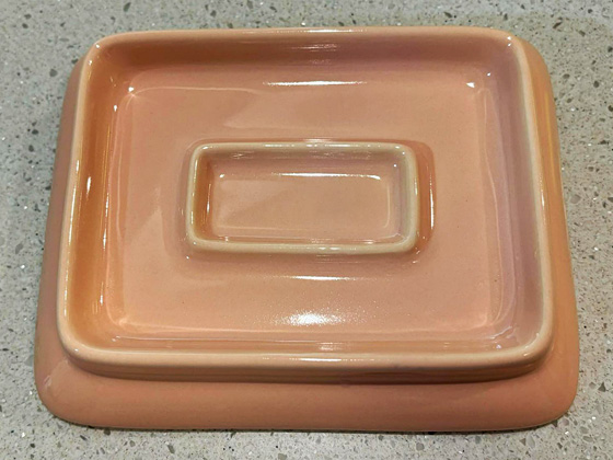 Ashtray 7" circa 1989, Peach glaze, photos from the collection of Leila Bowie McClenahan