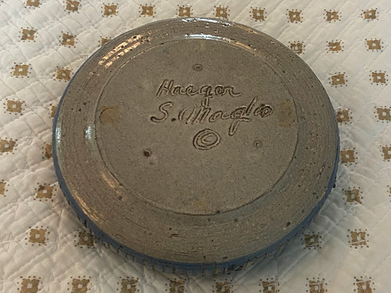 Round Ashtray by Sebastiano Maglio 7" circa 1966-1969, Grey & Blue Decorated glaze, photos from the collection of Michael Bono.