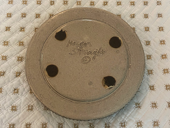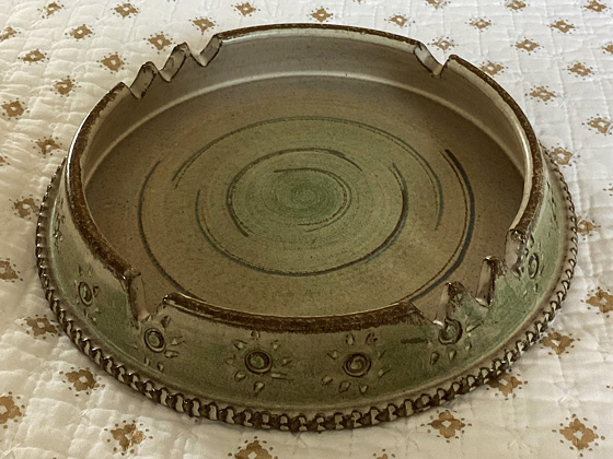 Round Ashtray by Sebastiano Maglio 8¼" circa 1966, Grey & Green Decorated glaze, photos from the collection of Michael Bono.