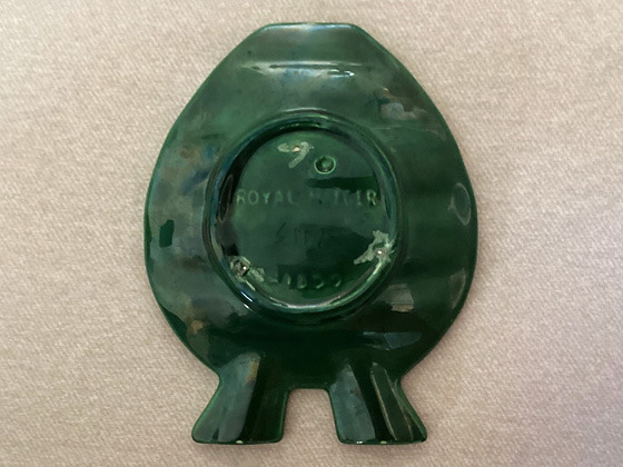 Pear Shaped Ashtray 7¼" circa 1953-1955, Green Agate glaze, photos from the collection of Michael Bono