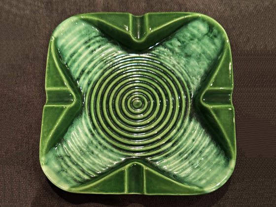 Square Rippled Ashtray 7½" circa 1954-1955, Green Stipple glaze, photos from the collection of Allen Rothpearl