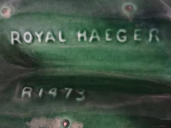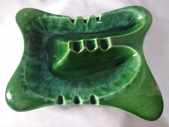 Modern Ashtray 9" circa 1955-1956, Green Stipple glaze, photos courtesy VicKevin on eBay