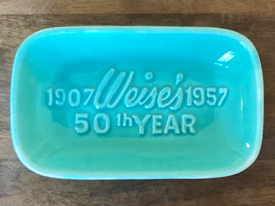 Not found in a catalog but made in celebration of Charles V. Weise Department Store's 50th anniversary 5¼", Turquoise glaze, photos from the collection of Michael Bono