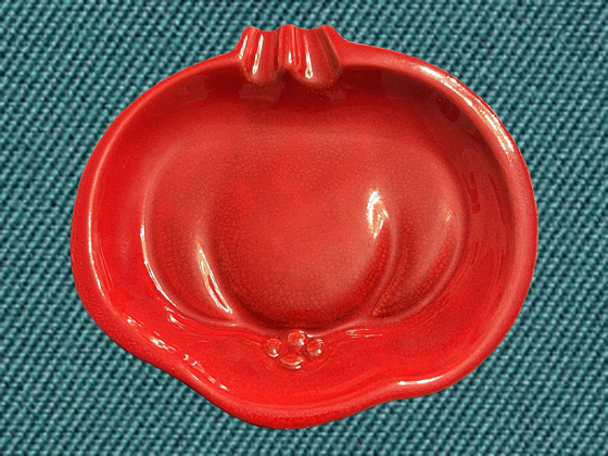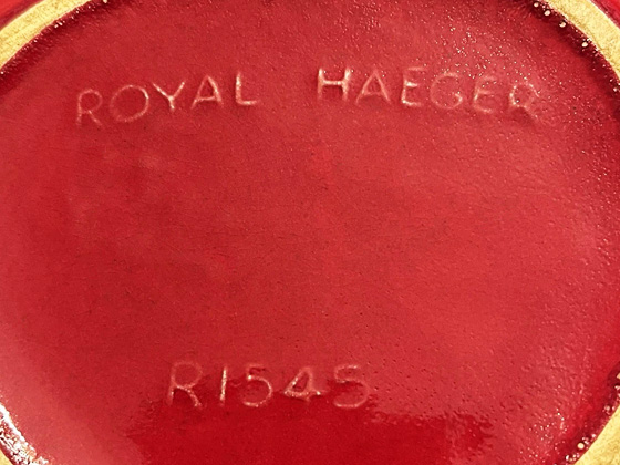 Not found in a catalog so circa unknown ≈7½", Haeger Red glaze circa 1955-1960, photos courtesy Pedreliafinds on eBay (now in the collection of Allen Rothpearl)