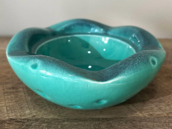 Scalloped Ashtray 6¾" circa 1955-1956, Turquoise Green Decorated glaze, photos courtesy Jamie Heraver on Facebook's Marketplace