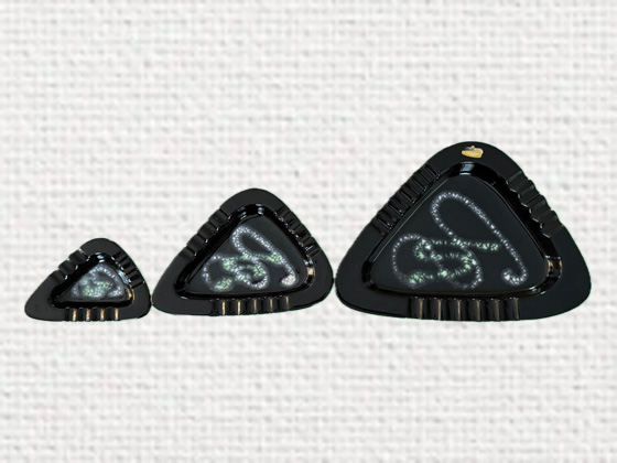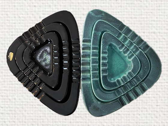 Free Form Nesting Ashtrays in 6, 9 & 12" circa 1956, Ebony Cascade and Turquoise Green Decorated glazes, photos from the collection of Allen Rothpearl