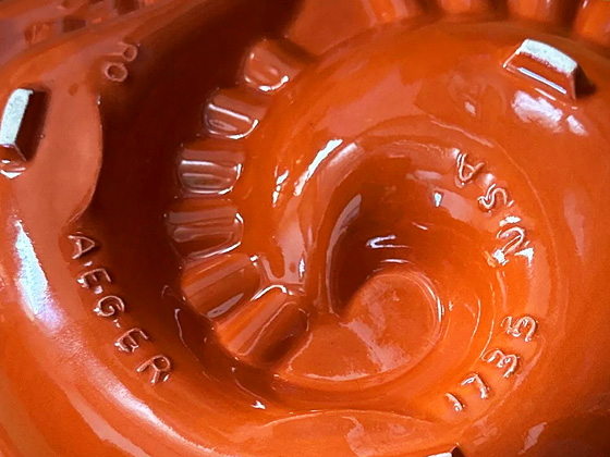 Shell Ashtray 11½" circa 1957-1976, Bittersweet glaze, photos courtesy A Hoarder's Delight on eBay