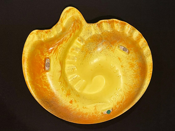 Shell Ashtray 11½" circa 1957-1976, Earthtones glaze, photos courtesy Thrifted Treasures on eBay