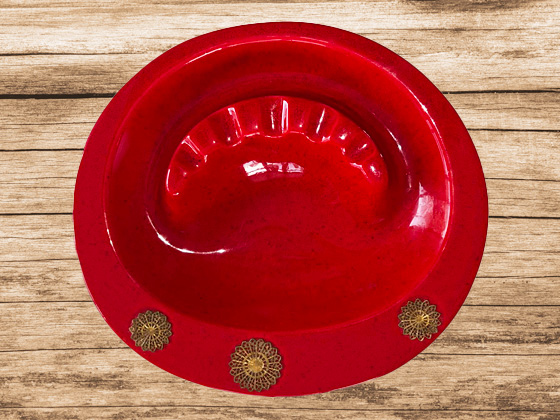 Oval Ashtray 10¼" circa 1957, Haeger Red glaze, photos from the collection of Lynne Schrotenboer Blourne