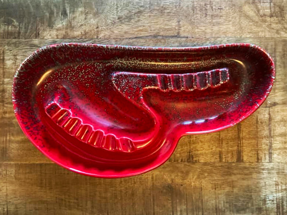 Modern Ashtray 114" circa 1957-1959, Carnival glaze, photos from the collection of Steve des Lauriers