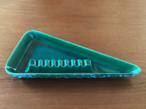 Leader Ashtray 14" circa 1959-1960, Green Texture glaze, photos from the collection of Michael Bono