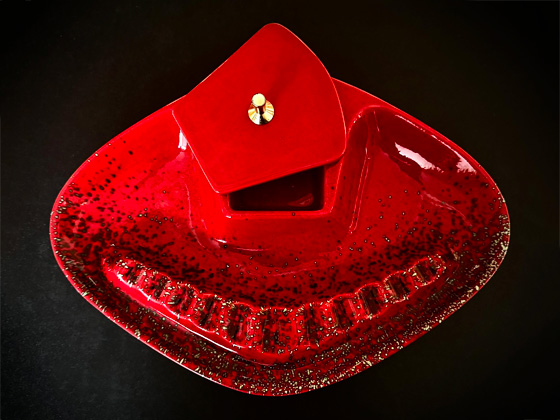 Diamond Shaped Ashtray Cigarette Box Combo 12½" circa 1957-1958, Carnival glaze, photos from the collection of Allen Rothpearl