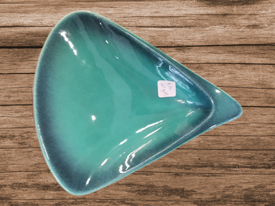 Pearl Shell Ashtray 11" circa 1957, Turquoise Green Decorated glaze, photos taken at a flea market by Dino Vlahos