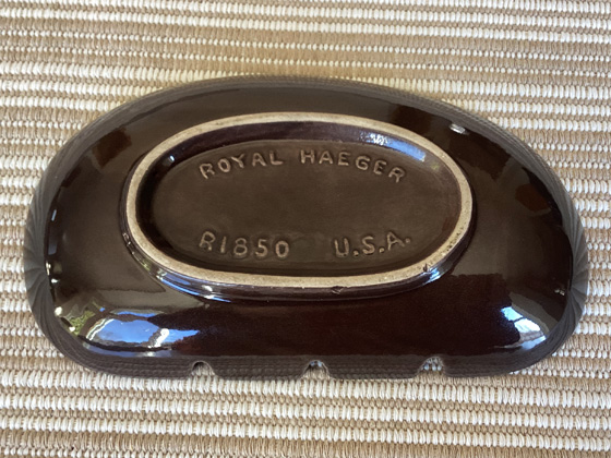 Oval Ashtray 8½" circa 1958-1960, Brown Jeweltone glaze, photos from the collection of Michael Bono