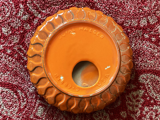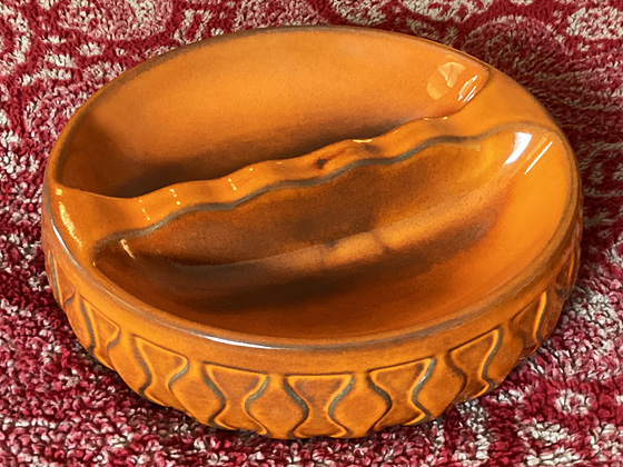Round Ashtray 8" circa 1958-1959, Pumpkin glaze, photos from the collection of Michael Bono
